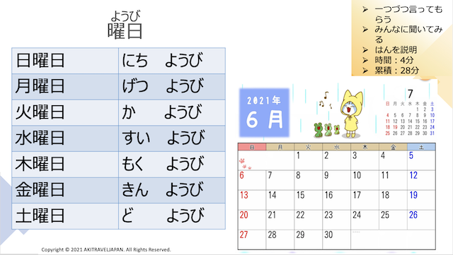 And one more, I give you bellow words. From Sunday to Saturday in Japanese.