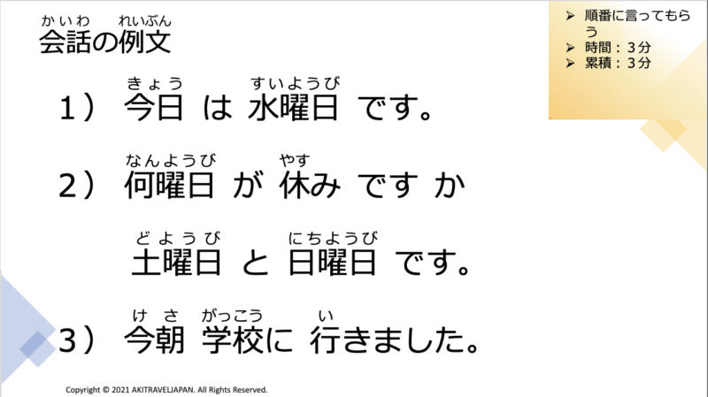 2. NANYOUBI GA YASUMI DESUKA? What days of the week are your day off?