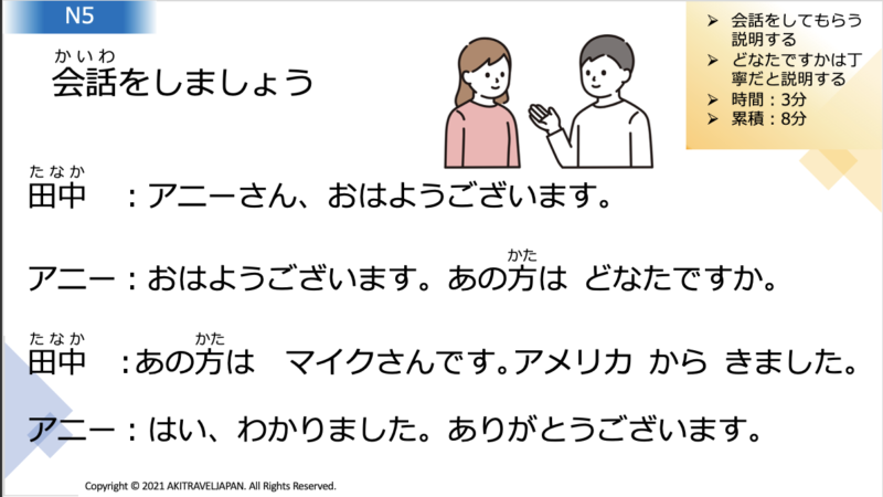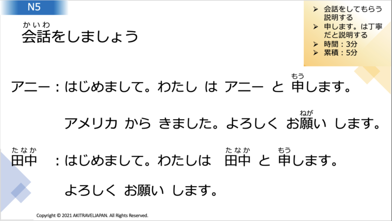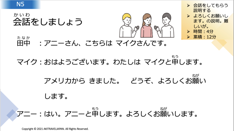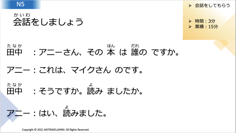 Today’s lesson is for conversation in Japanese. I give you some text for you.