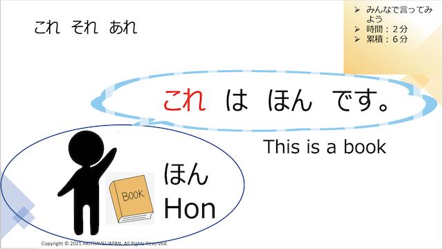 ”これはなんですか?”(What is this?) ”これ は ほん です”