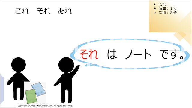 ”それはなんですか?”(What is it?) ”それ は ノート です”