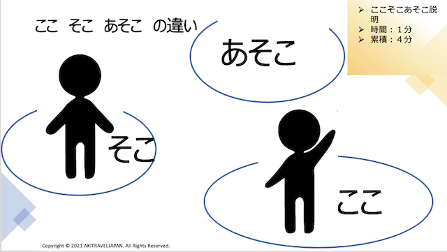 ばしょ は、 ” ここ そこ あそこ “ を つかいます。