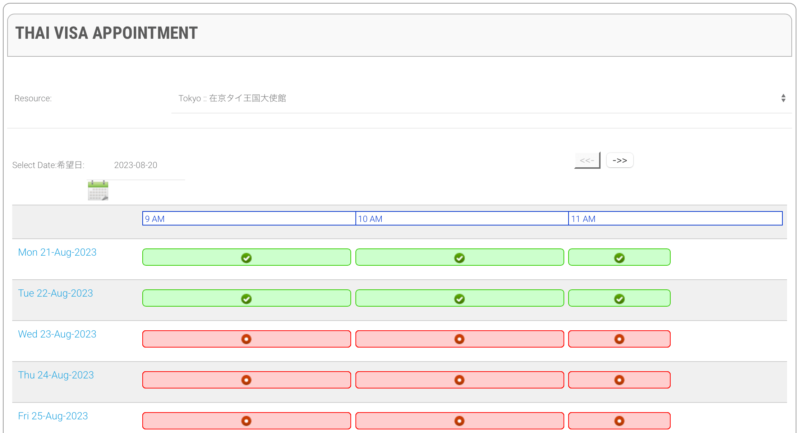 *8月19日に東京、タイ総領事館のサイトを覗いたら、今はかなり空いている模様。
