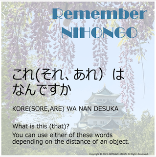 As you know, ” KORE ” ” SORE ” ” ARE “, you already studied them in NIHONG 2-1. You can already distinguish those words.
